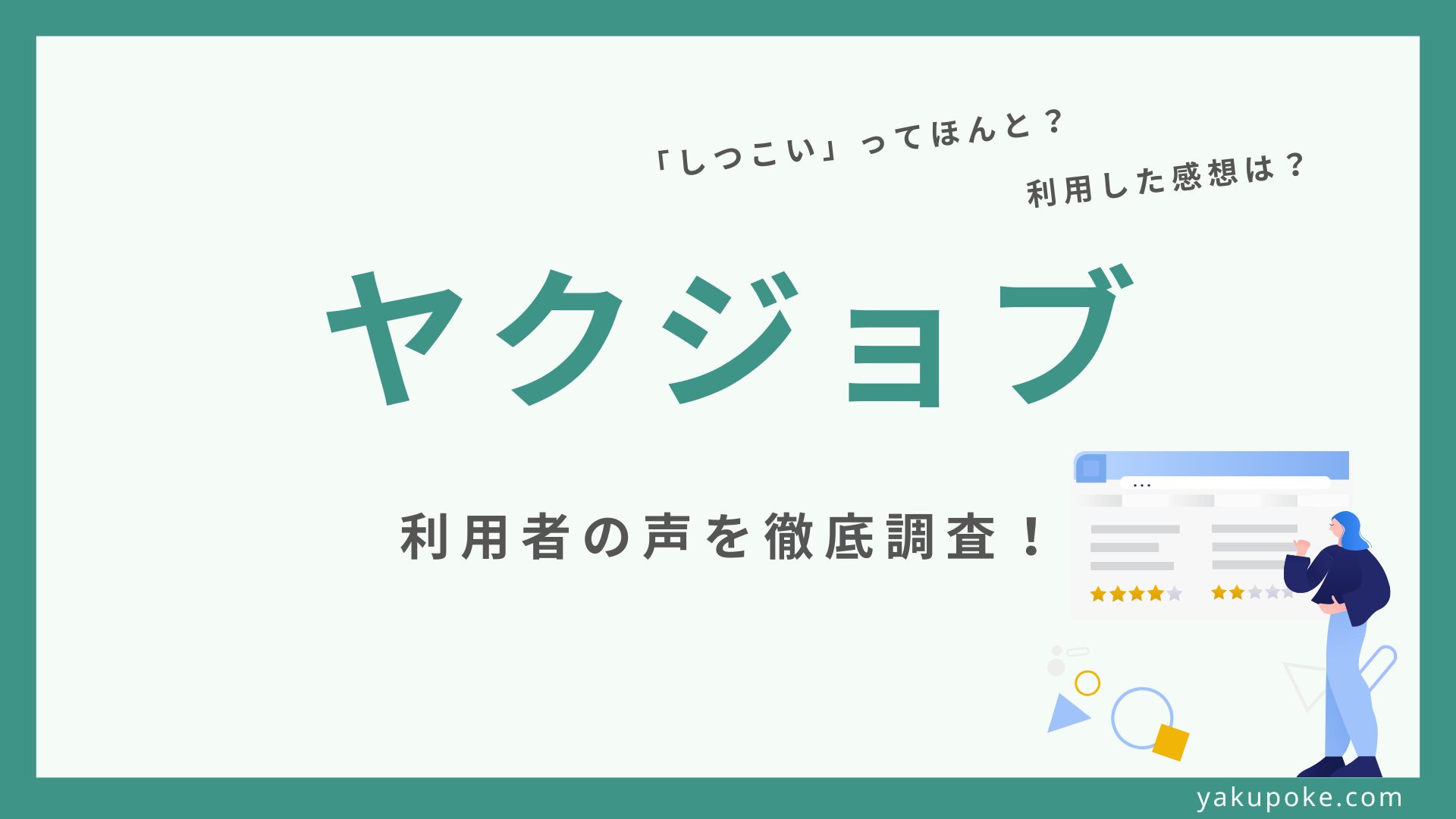 この記事では、ヤクジョブ利用者の口コミや評判を徹底リサーチし、メリット・デメリットからヤクジョブがおすすめなケースまで解説します。